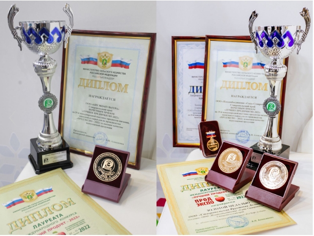 Золотые медали, другие награды «Продэкспо-2022» на малую родину привезли: мясокомбинаты «Новоалександровский», «Ставропольские деликатесы» и «Олимпия», предприятия «Сыродел» и «Эко-Культура», компании «Вкус Ставрополья» и «Сады Ставрополья», а также торговая марка «Петровские Нивы».