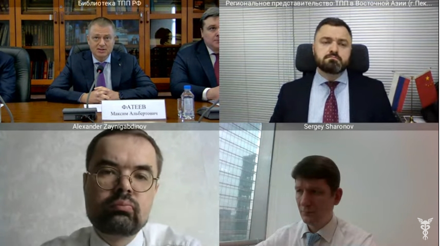 Спикерами выступили: руководитель регионального представительства ТПП РФ в Восточной Азии (город Пекин) Иван Изотов, директор ООО «СОЭКС-РК» (Москва) Евгений Кожевников, руководитель направления Департамента цифровых технологий ТПП РФ Дмитрий Рыжов, представитель юридической компании (China Window, Пекин) Александр Зайнигабдинов, вице-президент АО КБ «Солидарность» (Пекин) Сергей Шаронов, директор Департамента регионального развития ТПП РФ Илья Зубков.
