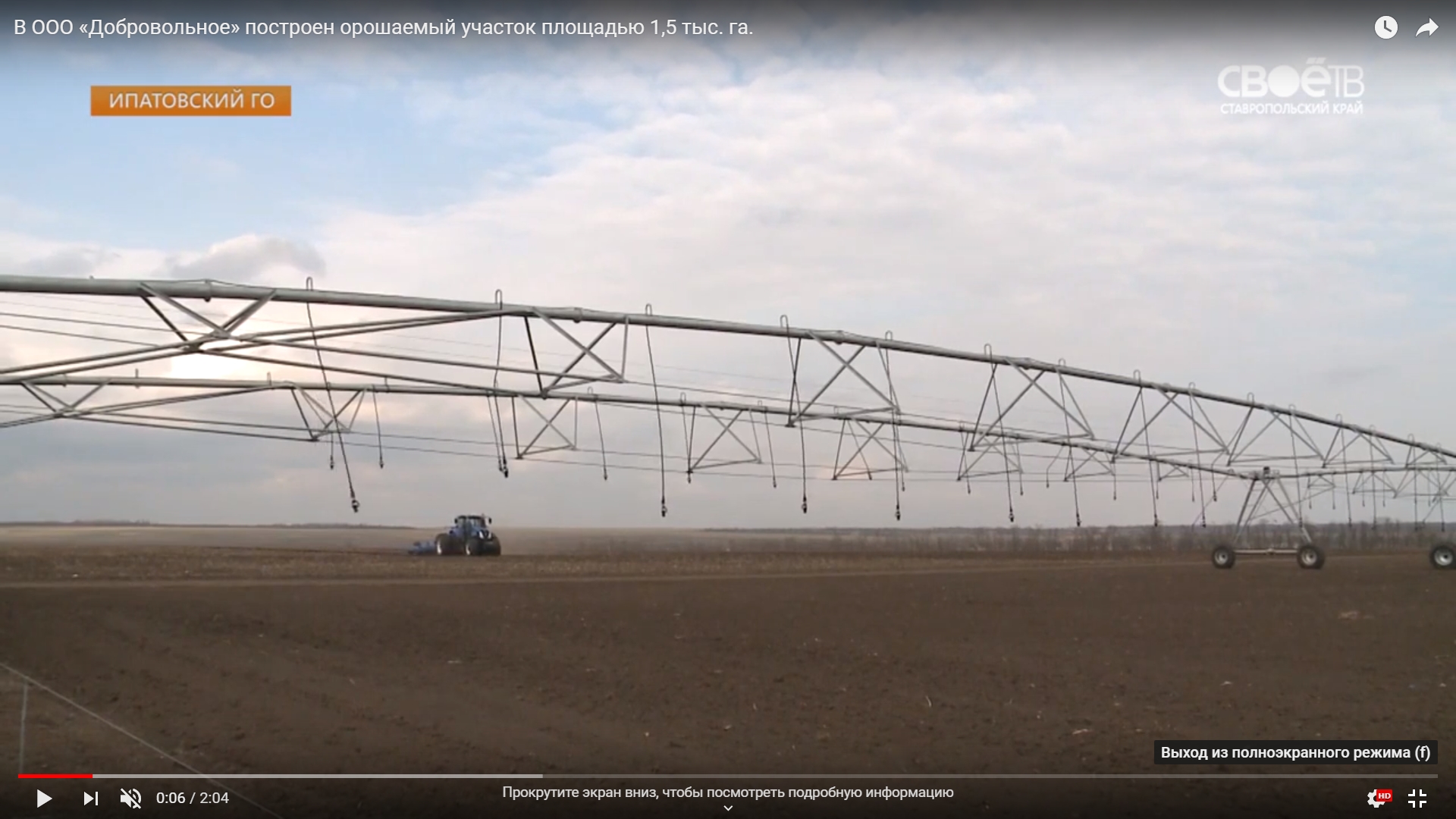 Одним из предприятий, начавших реализацию вышеуказанной политики является ООО «Добровольное». Сегодня здесь практически реализован инвестиционный проект по строительству орошаемых земель площадью свыше 1,5 тыс. га.