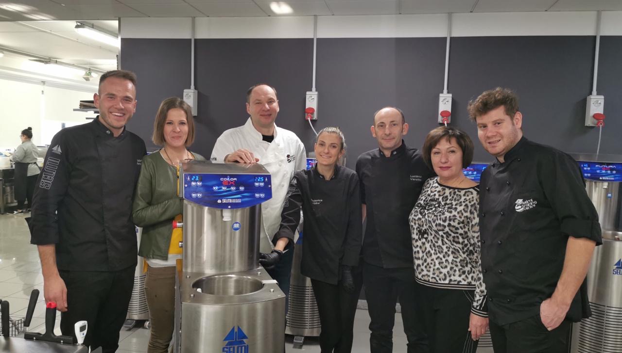 Сотрудники предприятия познакомились с передовыми разработками в сфере производства десертов и мороженого, а также прошли обучение и повышение квалификации в школе шоколатье итальянской компании SELMI.