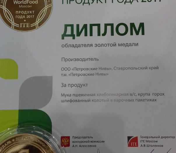 - Золотых медалей «Продукт года 2017» удостоились две ставропольские ООО «Петровские Нивы» и ИП Матвеев Евгений Иванович производитель торговой марки «Урожаюшка», - рассказал министр экономического развития Ставропольского края Валерий Сизов.