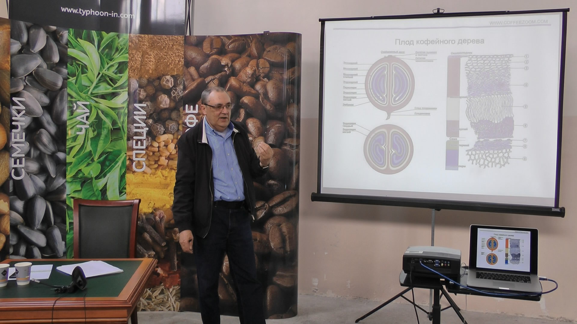 В выставочном зале были размещены два кофейных ростера компании «Тайфун-Инновация», там же проходил семинар. С началом выступления В.И Шамаева все присутствующие настроились на очень серьезный лад, тема фундаментальных знаний о кофе в том числе и обжарки волновала каждого, но так детально и глубоко в эти процессы многие не вдавались. Кофейное зерно разложили буквально на атомы и рассказали что происходит с зерном в переод термообработки как в стандартных ростерах, так и в ростерах «Тайфун», в которых используется инновационный метод обжарки в кипящем слое.