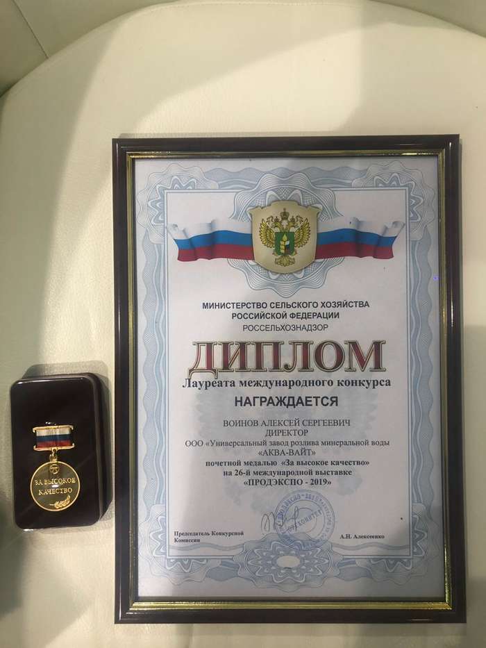 Так, почетным призом «Лучшее предприятие-2019» на международной выставке «Продэкспо-2019» за высокое качество выпускаемой продукции награждена компания «АКВА-ВАЙТ».