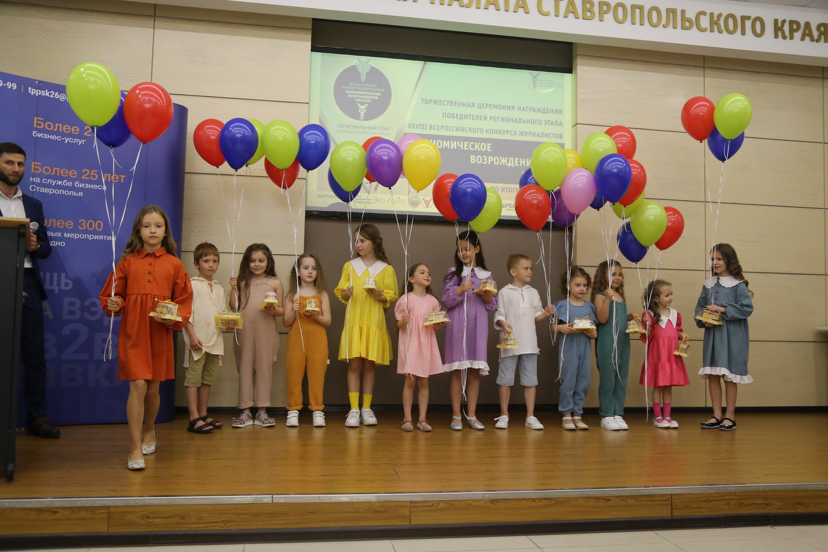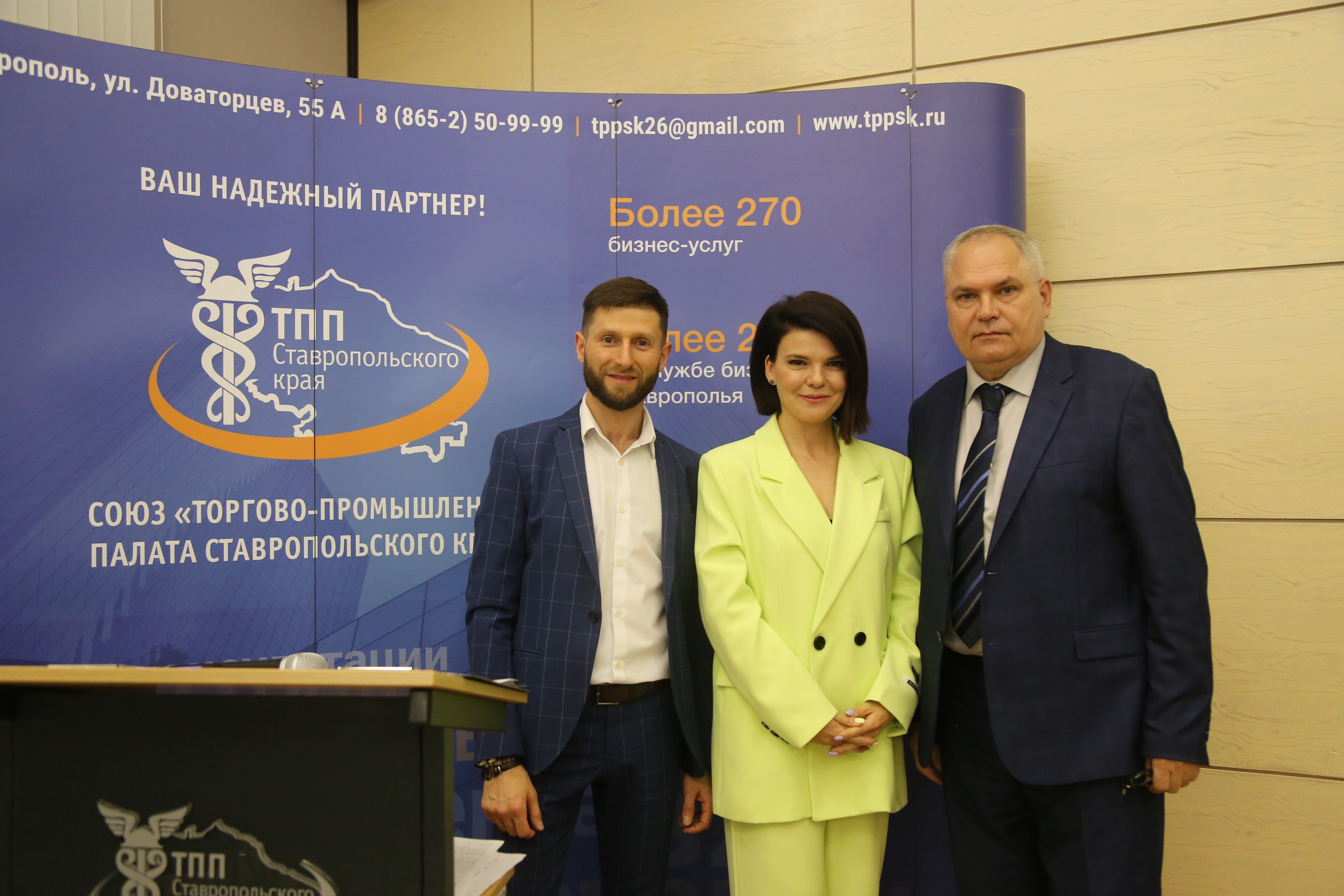 Победителей и участников церемонии приветствовали и поздравляли директор Центра по связям со СМИ ТПП РФ Александр Шкирандо, президент ТПП СК Борис Оболенец.