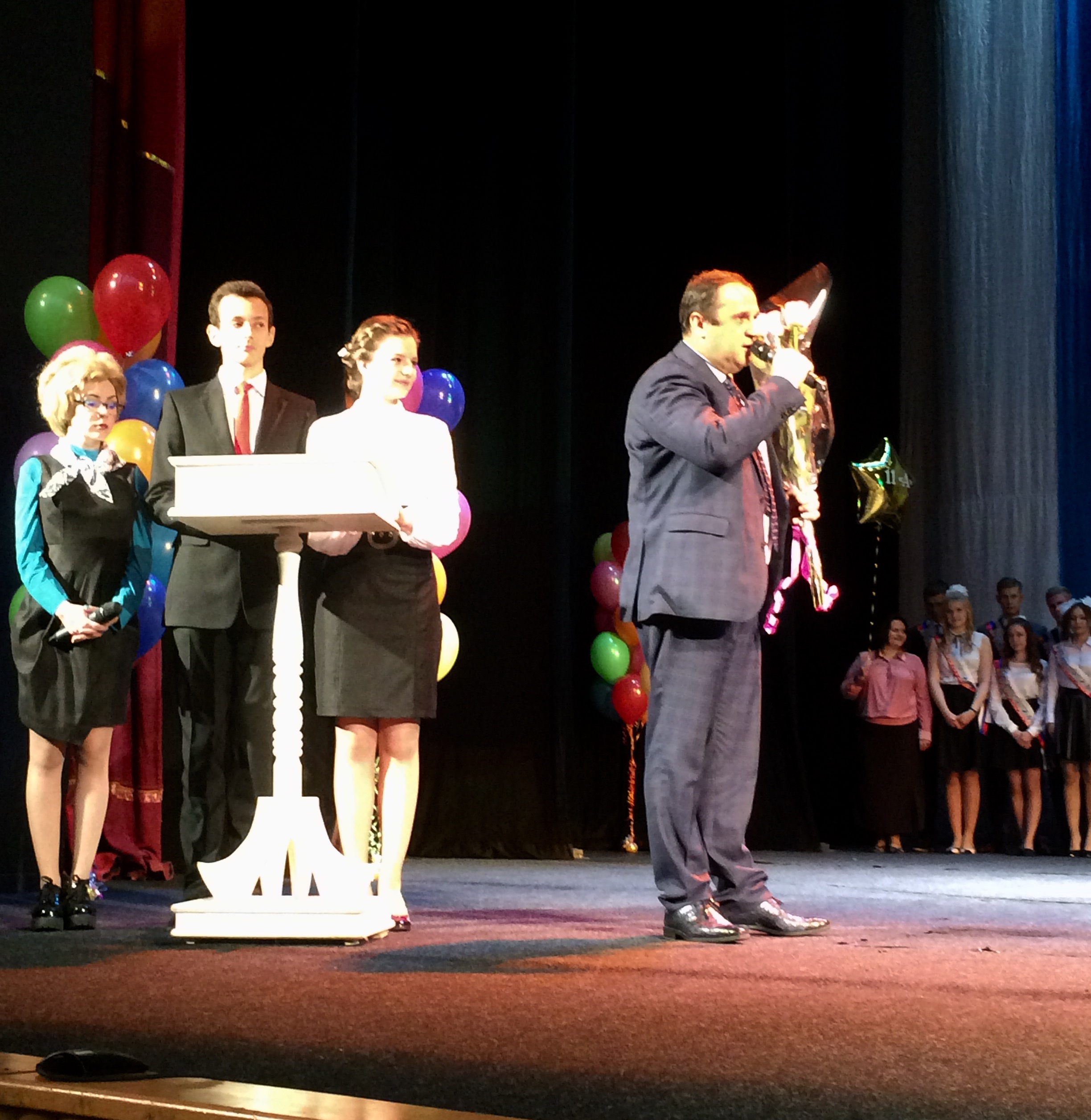 Депутат совместно с выпускниками поблагодарил учителей за их труд на протяжении 11 школьных лет и вложенную в каждого из них душу, а ребятам пожелал успешной сдачи ЕГЭ, легких начинаний, удачных свершений и светлого будущего.
