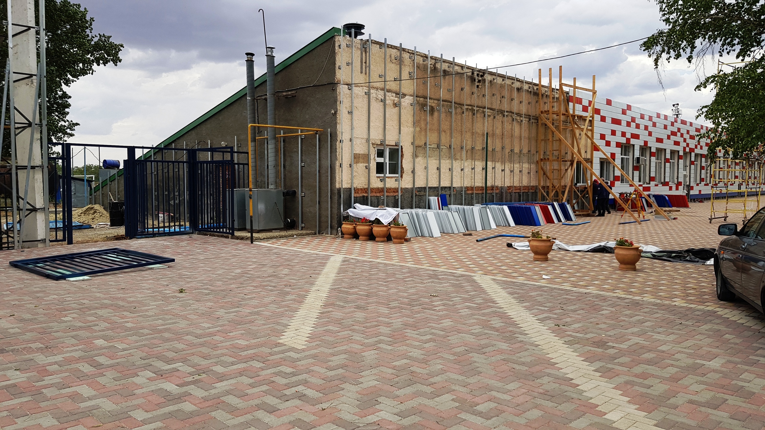 В данный момент идут работы по облицовки фасада здания. В северной части уже появилось новое ограждение, а половина здания стадиона «оделась» в красно-белую палитру отделочных материалов. Вскоре появится навес над входной группой, а высокие колонны, рядом со зданием также будут «наряжены» в красивую отделку.