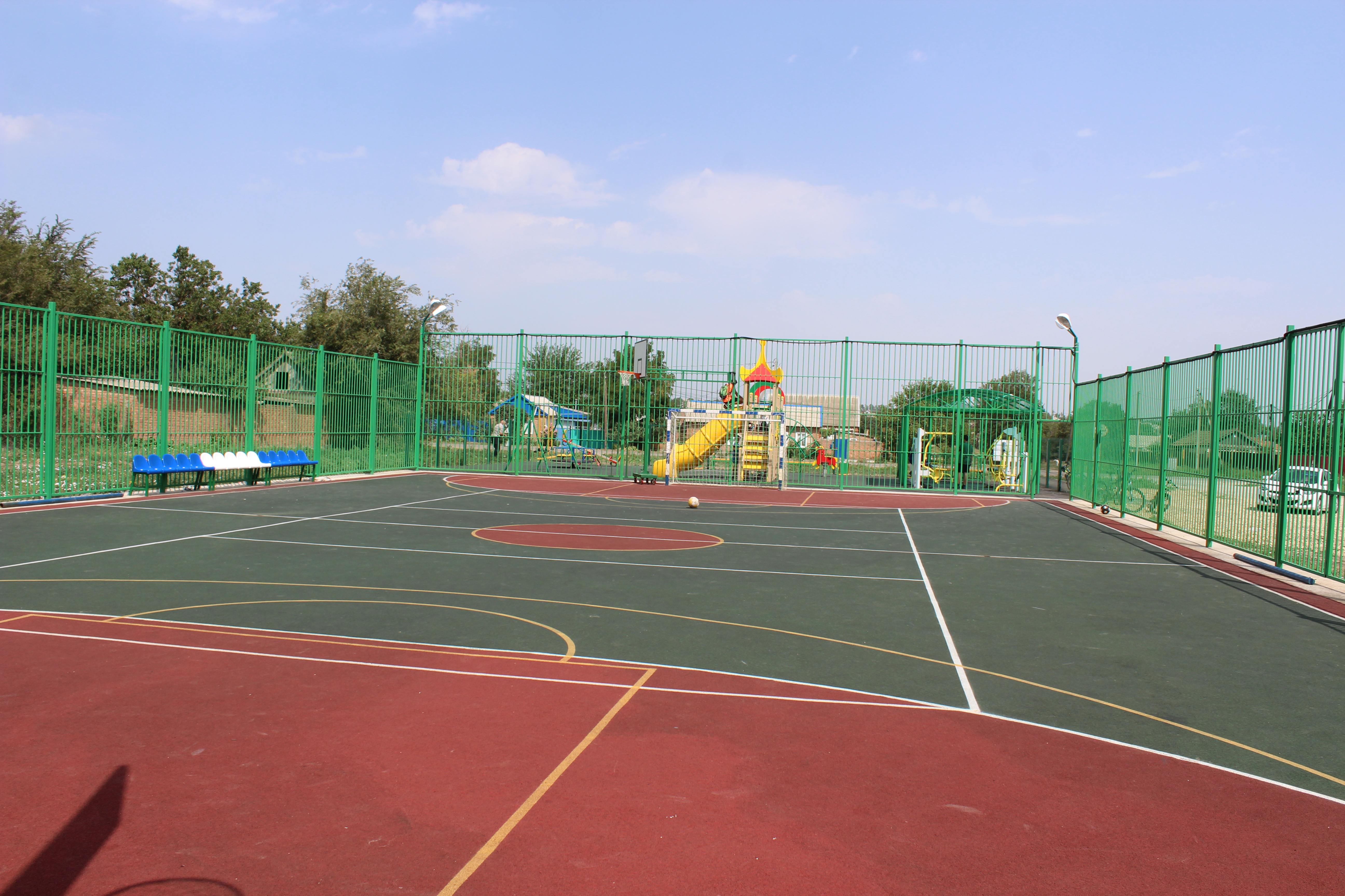 На 914 квадратных метрах расположились: комплексная спортивная площадка для занятий баскетболом, волейболом и мини-футболом; детская игровая площадка с мини городком, качелями, каруселью, качалками и горками; крытая площадка с уличными тренажёрами. На территории также была установлена беседка со скамейками, вокруг комплекса оборудовано уличное освещение, заасфальтированы тротуары и дорожки.
