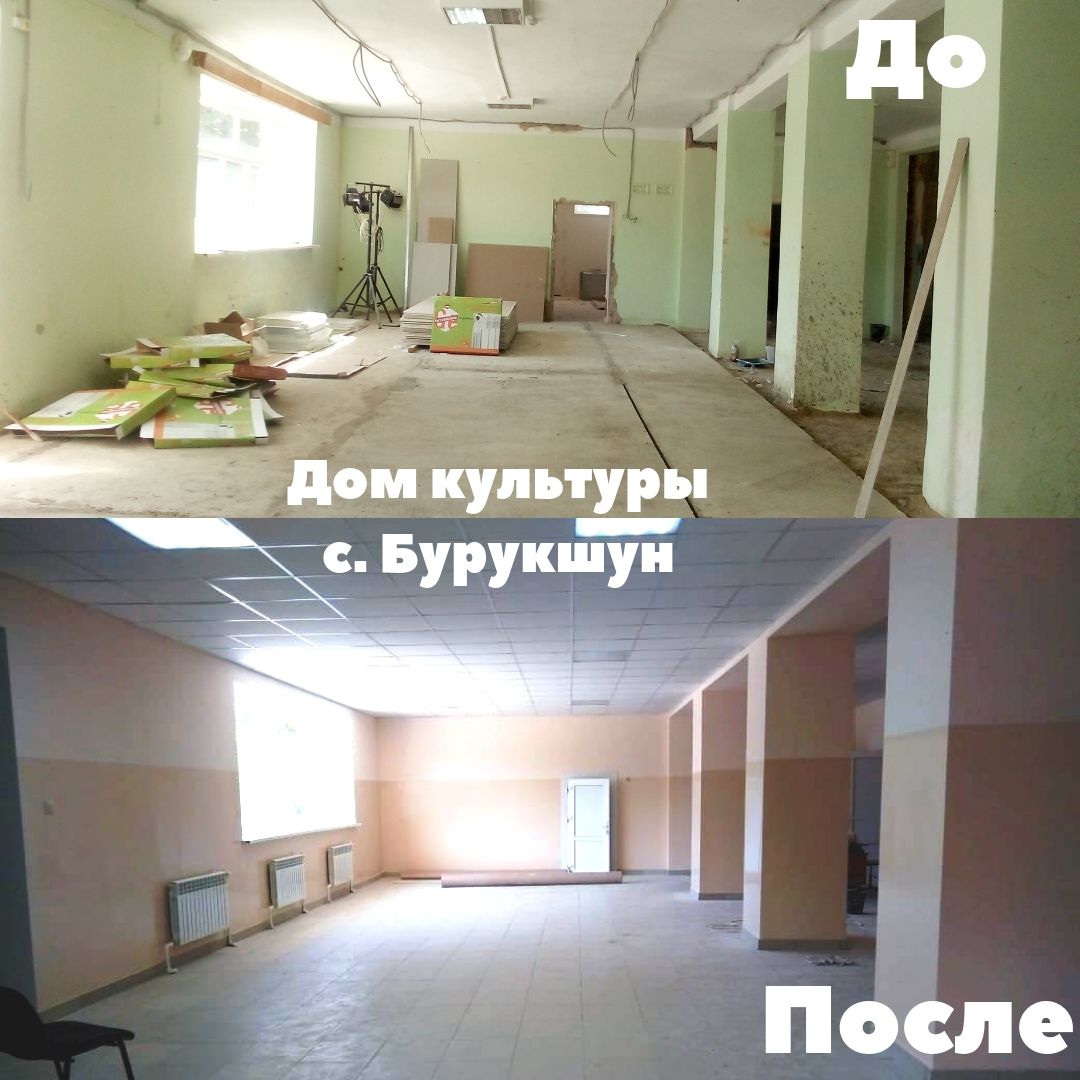 Ремонт Дома культуры – это большое событие для села Бурукшун. Объекты культуры всегда являлись и являются центром жизни села, где проходят собрания, праздники, выпускные балы, новогодние мероприятия. В селе практически вся общественная жизнь людей проходит с участием работников культуры. Освоено 8 606 994,80 руб.средств федерального бюджета и 549 383,25 руб. краевого, благодаря государственной поддержке в рамках реализации подпрограммы «Государственная поддержка отрасли культуры» государственной программы Ставропольского края «Сохранение и развитие культуры».
