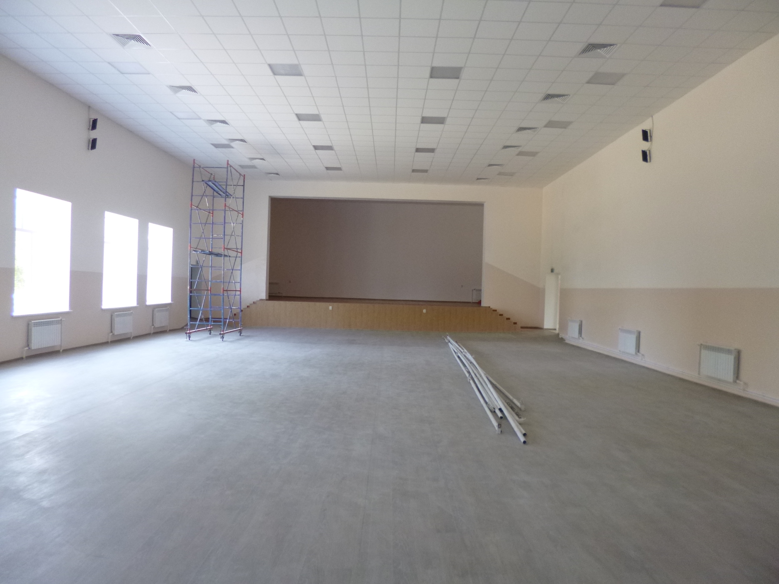 Выполнен капитальный зрительного и танцевального залов, библиотеки, холла, кабинетов, служебных помещений. Установлены подвесные потолки, застелен линолеум и положена плитка. Заменена система отопления, все двери и перила лестничного марша, установлена вентиляция, смонтирована новая система электроснабжения.