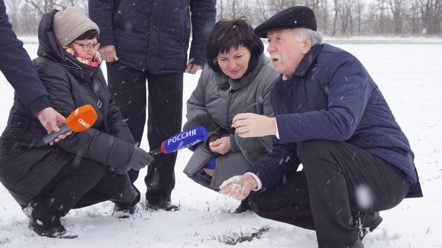 Целью поездки Николая Тимофеевича было посещение в Кугульте сортоиспытательной станции, в частности семеноводческого участка. Первый зампред Правительства края лично убедился в состоянии озимых культур, поскольку сложившиеся погодные условия, а именно, отсутствие осадков вызывают опасения в качестве и количестве урожая в текущем году.