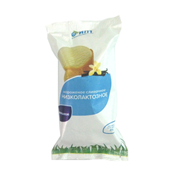 Состав: молоко обезжиренное, фермент лактаза, сахар, масло сливочное, молоко сухое обезжиренное, вафли (мука пшеничная, крахмал картофельный, яичный порошок, моно- и диглицириды жирных кислот, гуаровая камедь, каррагинан, альгинат натрия), ароматизатор ванилин.