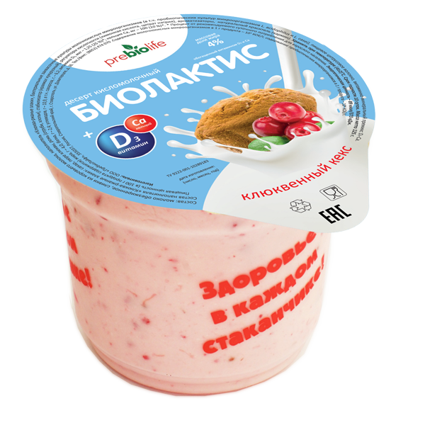Состав: молоко обезжиренное, сливки, наполнитель «Клюквенный кекс» (сахар, пюре клюквы, рожь (отруби, хлопья), стабилизатор (крахмал кукурузный), регуляторы кислотности (лимонная кислота, цитрат натрия), ароматизаторы, натуральный краситель (кармин)), бактериальные заквасочные культуры молочнокислых микроорганизмов (в т.ч. пробиотических культур микроорганизмов L. acidophilus и L. casei), пищевое цитрусовое волокно, витаминно-минеральный премикс D3-Са.