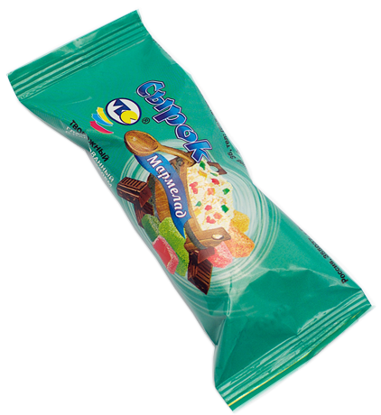 Состав: творог, сахар, глазурь « Ставропольская» (жир растительный, сахар, какао-порошок, эмульгатор лецитин, ароматизатор ванилин) , наполнитель мармелад (сахар, вода, стабилизатор - пектин, регулятор кислотности лимонная кислота, ароматизаторы « Малина», «Апельсин», «Лимон», «Зелёное яблоко»; красители натуральные: каротины, кармин, хлорофилл; консерванты: сорбат калия, бензоат натрия), масло сливочное, ароматизатор ванилин.