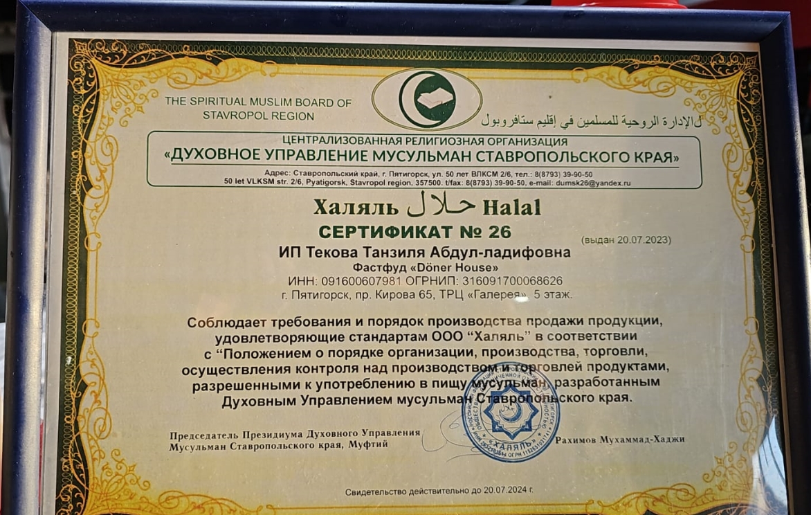 Так, за последний месяц представители ДУМ СК уведомили о проведенных проверках в супермаркете, кафе, заведении быстрого питания и еще ряд мест города-курорта Пятигорска, где имеются рекламные надписи «Халяль».