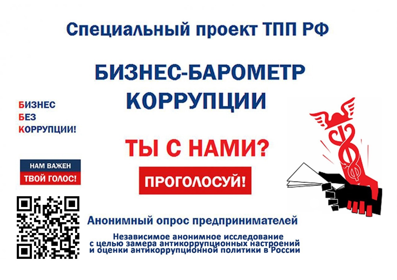 Вот уже четвертый год ТПП РФ реализует проект «Бизнес-барометр коррупции» – он включен в Национальный план противодействия коррупции на 2018 - 2020 годы. Это исследование – анонимный опрос бизнеса; его итоги покажут, какую роль играет коррупция в отношениях властных структур с бизнесом и как предпринимательские круги оценивают реализацию соответствующей государственной политики.