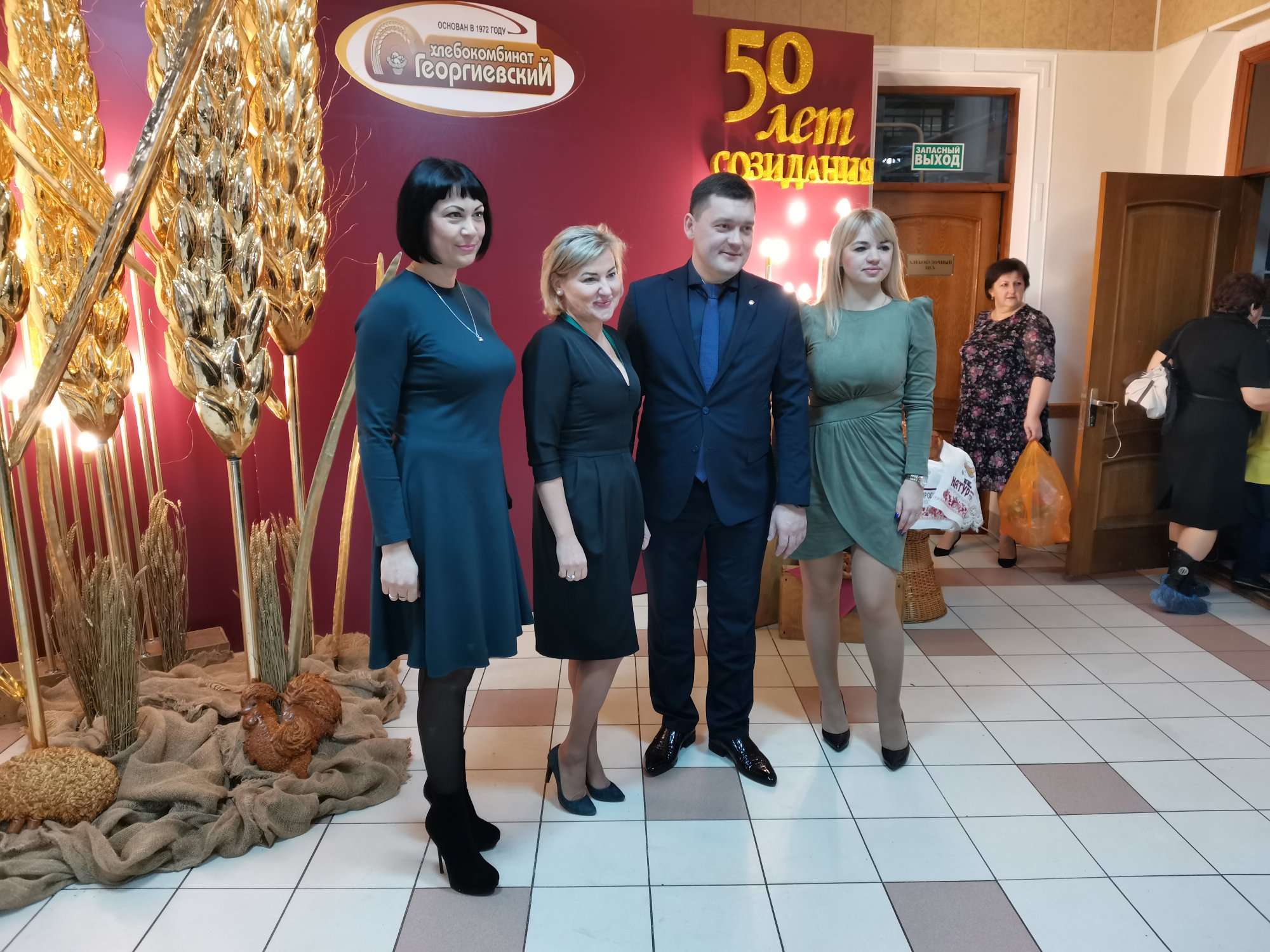 За добросовестный труд и любовь к делу, а также в связи с 50-летием образования АО «Хлебокомбинат «Георгиевский» Почетной грамотой ТПП СК награждены: Сергеева Анна Александровна, заместитель генерального директора по качеству выпускаемой продукции, Короткова Марина Сергеевна бухгалтер-кассир, Аношкина Татьяна Сергеевна - заместитель главного бухгалтера, Кулешов Андрей Юрьевич - главный энергетик, Большакова Ирина Викторовна - оператор промышленных печей.