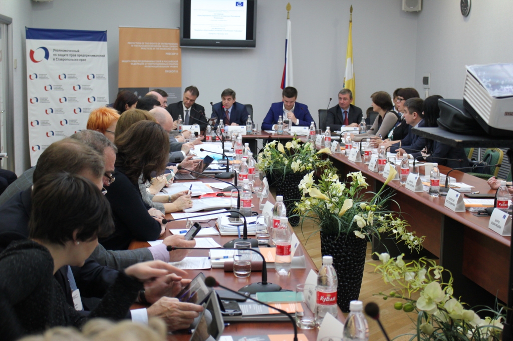 В обсуждениях приняли участие министр экономического развития Ставропольского края Валерий Сизов, директор ГКУ СК «МФЦ» Татьяна Роменская, руководитель ОП ТПП Ставропольского края в г. Минеральные Воды Татьяна Пилипенко, представители института Уполномоченных по защите прав предпринимателей федерального и регионального уровней, эксперты Аналитического центра при Правительстве РФ, а также представители государств, осуществляющих финансовую поддержку проекта (Великое Герцогство Люксембург и Норвегия).