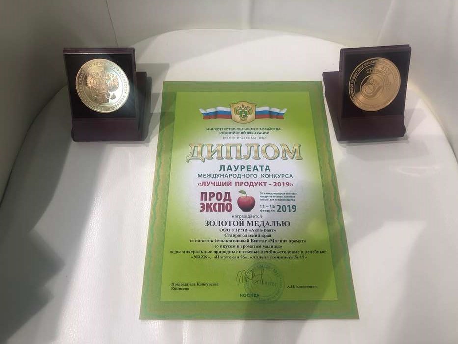 Минеральная вода «Аллея источников №17», «NRZN», «Нагутская 26» и безалкогольный напиток «Бештау Малина аромат» компании «АКВА-ВАЙТ» награждены золотыми медалями.