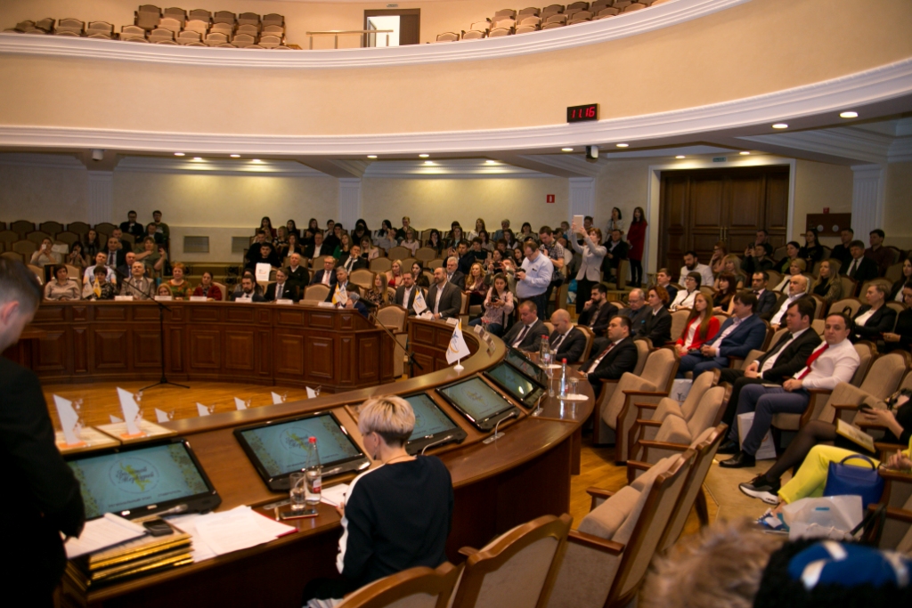 С трибуны озвучена информация о каждой вновь вступившей в члены Палаты компании, сопровождающаяся презентациями об услугах и товарах: