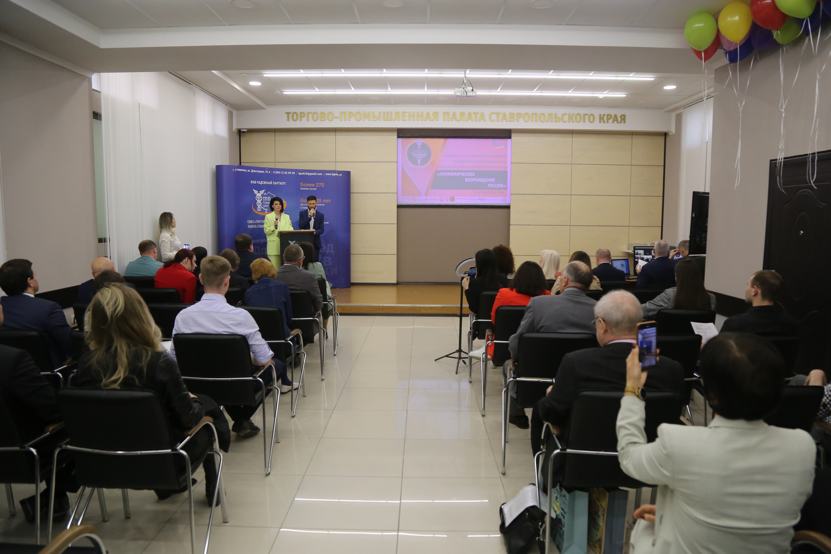 Победителей и участников церемонии приветствовали и поздравляли директор Центра по связям со СМИ ТПП РФ Александр Шкирандо, президент ТПП СК Борис Оболенец.
