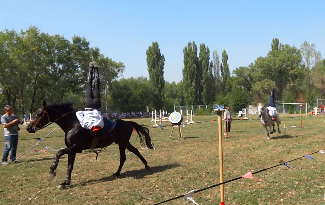 После шоу-парада лучших лошадей чистокровной арабской породы зрителям показали экстремальную джигитовку. Каскадеры продемонстрировали ловкость балансировки на лошадях, выполнение акробатических фигур, стрельбу из лука и рубку лозы.