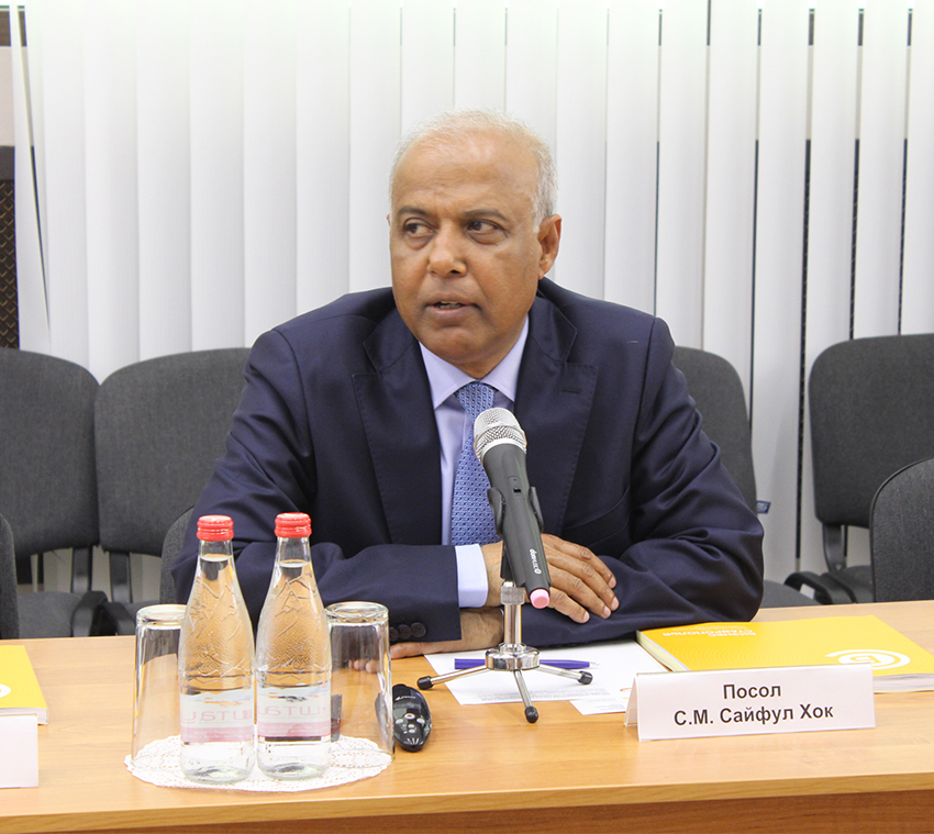 С.М. Сайфул Хок выступил с презентацией экономического потенциала Республики Бангладеш. Так, он отметил лидирующие позиции республики в производстве и экспорте продукции легкой промышленности: 2 место в мире по производству текстиля, 3 место – производство одежды. Кроме того С.М. Сайфул Хок рассказал о преференциях, предоставляемых государством в части привлечения инвестиций: льготные условия на размещение в 8-ми производственных зонах, низкая стоимость энергоснабжения.