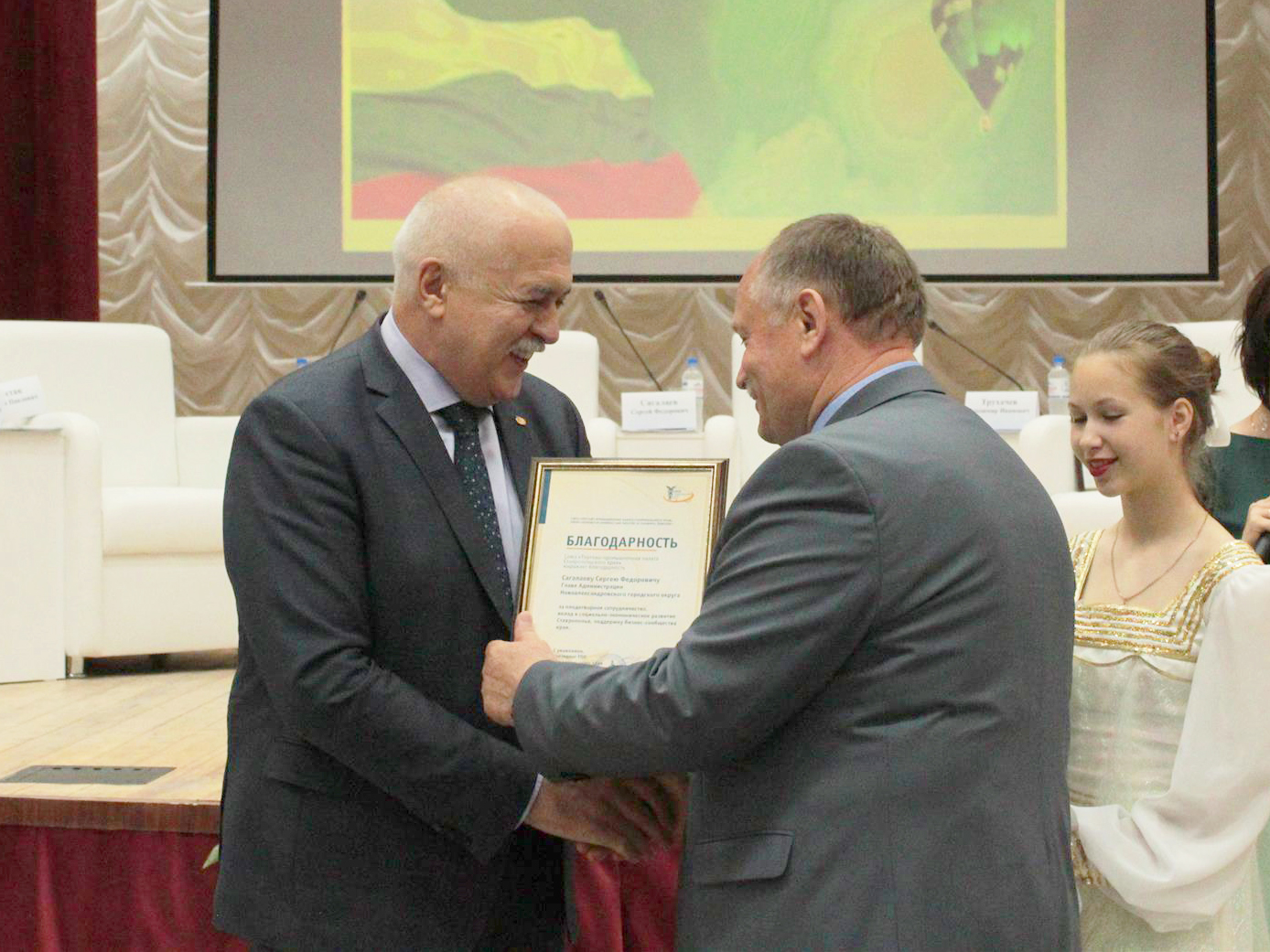 В торжественной обстановке Благодарственное письмо ТПП Ставропольского края вручено Главе Администрации Новоалександровского городского округа Сергею Сагалаеву за плодотворное сотрудничество и вклад в социально-экономическое развитие Ставрополья.