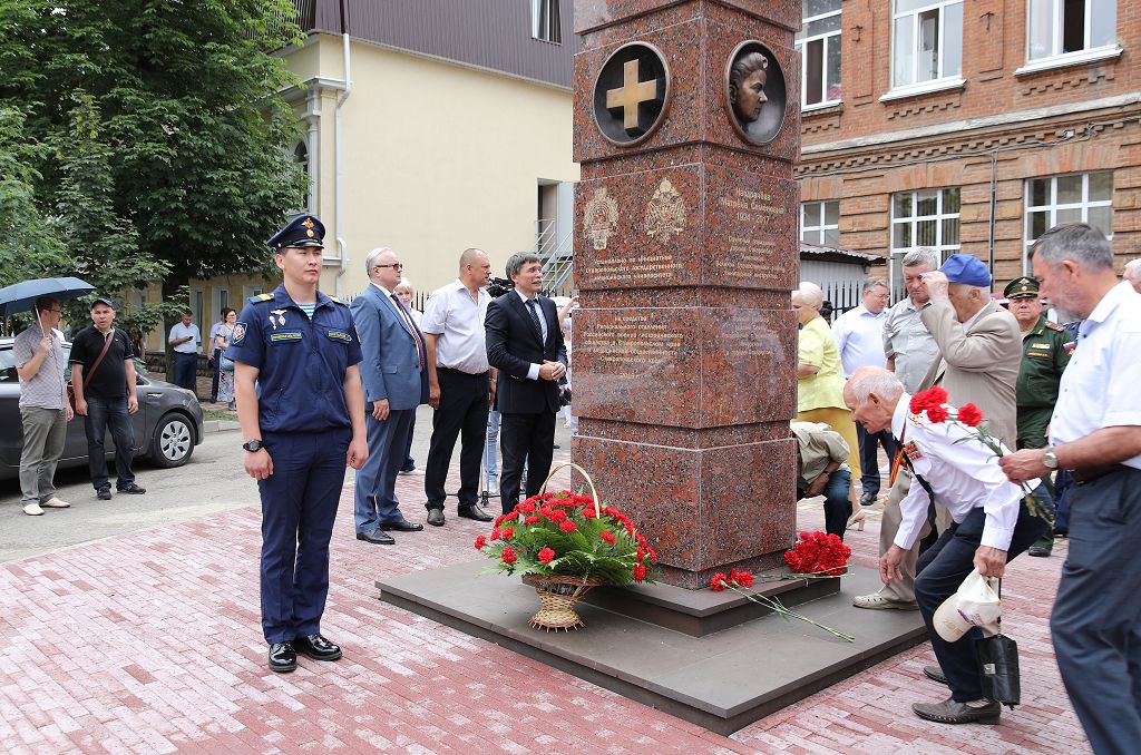 Отмечалось, что памятный знак в виде гранитной колонны с бронзовыми барельефами героинь и мемориальными табличками установлен на средства регионального отделения военно-исторического общества в Ставропольском крае и медицинской общественности: "У государства, которое не помнит своих героев – нет будущего. Мы помним, и на каждой улице, которая носит их имена, будут со временем устанавливаться такие памятники",– отметил Сергей Шевелев.