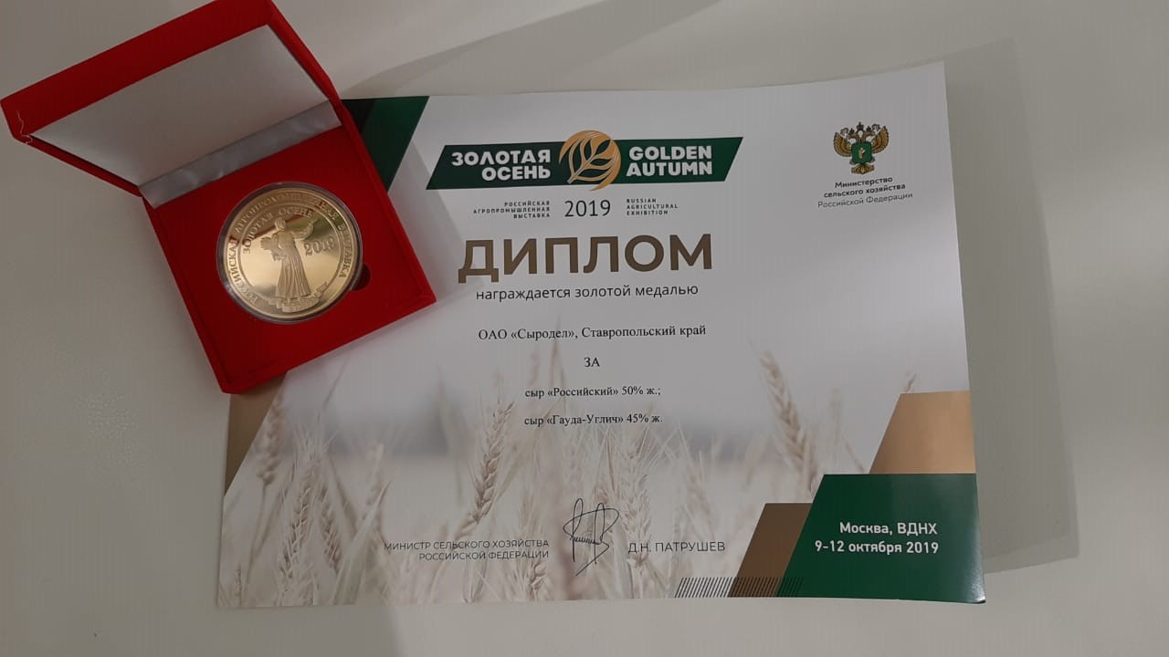 На прошедшей с 9 по 12 октября 2019 года в павильонах и открытых площадках ВДНХ 21-й Российской агропромышленной выставки «Золотая осень», золотой медалью и дипломом победителя были удостоены сыр «Российский» 50% и сыр «Гауда-Углич» 45% Ипатовского «Сыродела».