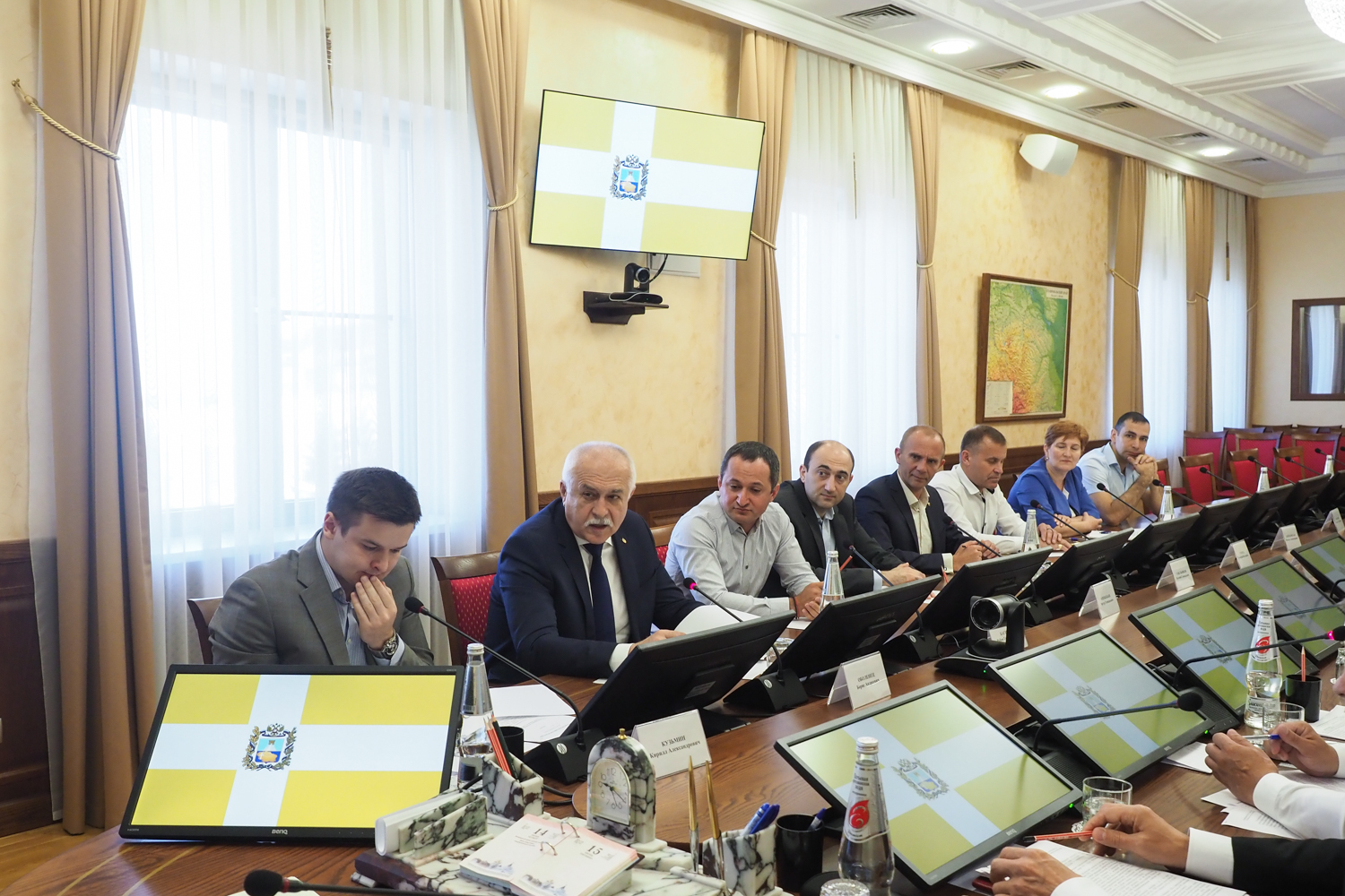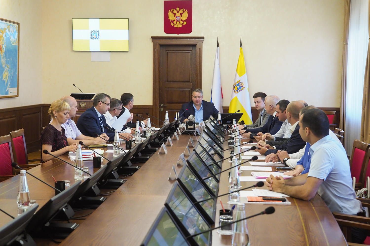 Совещание прошло под председательством Губернатора Ставрополья Владимира Владимирова. В нем приняли участие президент Союза «Торгово-промышленная палата Ставропольского края» Борис Оболенец, бизнес-омбудсмен в Ставропольском крае Кирилл Кузьмин, руководители краевых МинЖКХ и Тарифной комиссии, представители отраслевых компаний