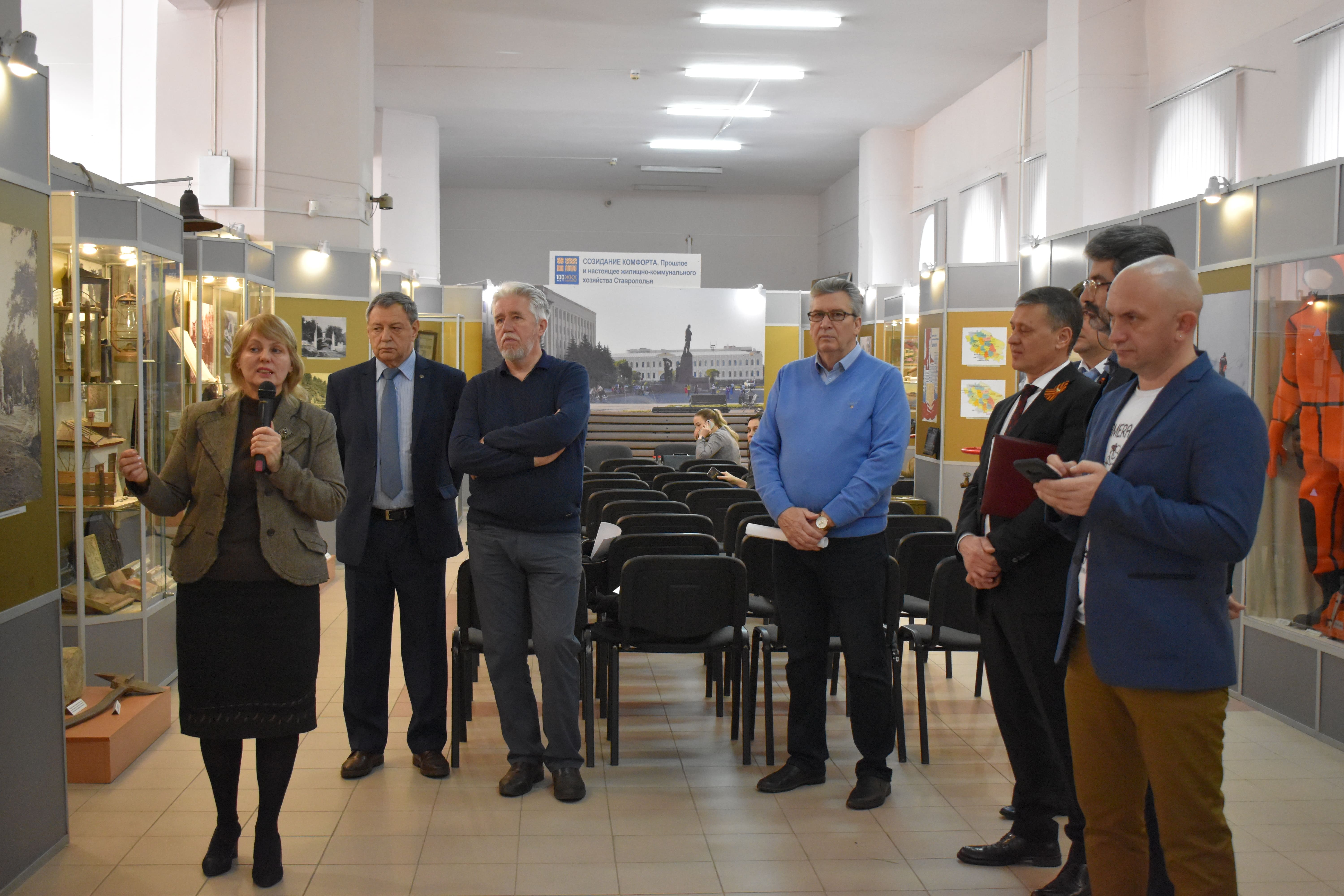 Заседание прошло в Ставропольском государственном музее-заповеднике им. Г.Н. Прозрителева и Г.К.Праве, в зале, в котором с 14 января демонстрируется выставка, посвященная вековому юбилею ЖКХ края. Сотрудники музея провели гостей по экспозиции и рассказали историю развития отрасли на Ставрополье от строительства первого водопровода до наших дней.