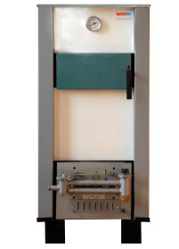 Теплообменник трубного типа. В топке котла расположено горизонтально 18 труб диаметром 32 мм, связанных с рубашкой котла. Котел изготовлен из стали 4 мм, что увеличивает срок службы котла до 20 лет. КПД котла не менее 85%. Котел комплектуется автоматической, пятирожковой щелевого типа горелкой марки АГУ-Т-М-25 кВт. Дымоход прямоугольного типа расположен на задней стенке котла. Возможна комплектация котла переходником дымохода под вертикальную круглую трубу с устройством сажесборника.