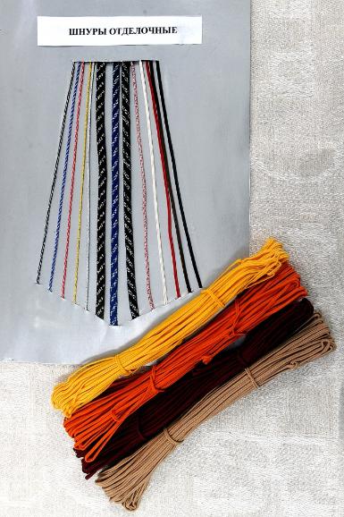 Шнурки отделочные применяются для отделки в швейной и трикотажной промышленности ширина от 1,5мм. до 9 мм. Намотка по 10 и 100 метров, по согласованию с потребителем намотка может быть изменена